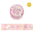 - Cinta adhesiva decorativa con estampado de flores rosas.