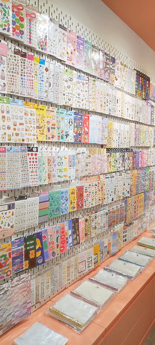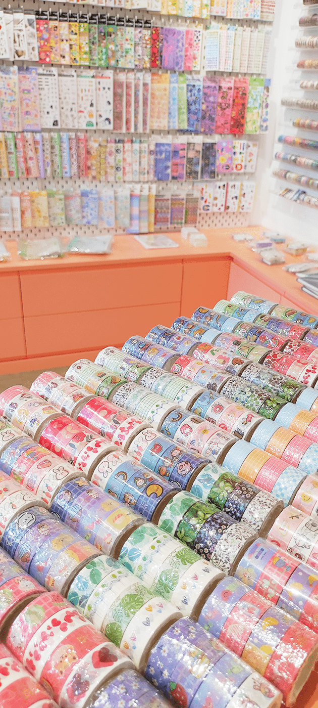 Al entrar en nuestra tienda, te sentirás rodeada de stickers, washi tapes, bolis. Todo a la vista, todo pálpable y todo irresistible.